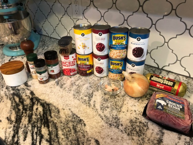 In a large skillet add 1 tbsp of oil and heat pan to medium-high heat. Add the sausage and the bison to pan and start browning. Salt and pepper meat. Once fully browned remove from heat and strain away any excess fat. Add browned meat…