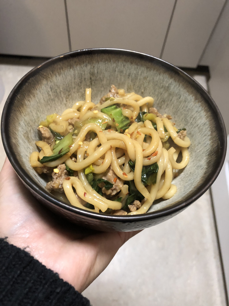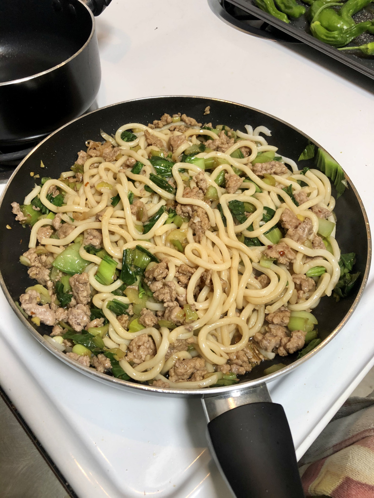 To me, there is nothing better than an Asian fusion dish, especially with two of my favorites: Japanese udon noodles and Chinese cabbage aka bok choy. Instead of ordering takeout, try this delicious recipe and I promise you will not regret it. This recipe was inspired by bon appetit.